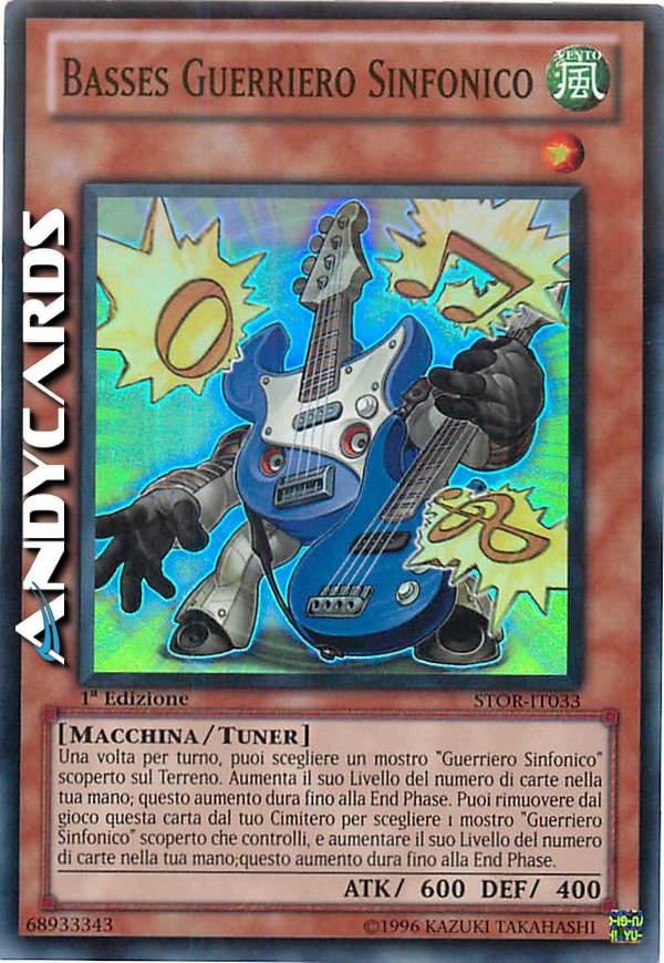 Una volta per turno, puoi scegliere un mostro "Guerriero Sinfonico" scoperto sul Terreno. Aumenta il suo Livello del numero di carte nella tua mano; questo aumento dura fino alla End Phase. Puoi rimuovere dal gioco questa carta dal tuo Cimitero per scegliere 1 mostro "Guerriero Sinfonico" scoperto che controlli, e aumentare il suo Livello del numero di carte nella tua mano; questo aumento dura fino alla End Phase.
