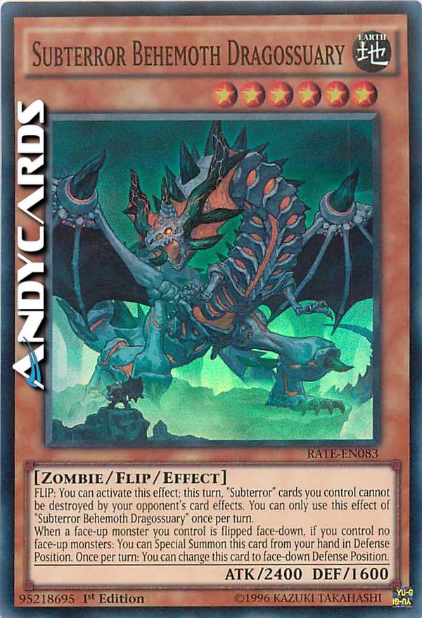 FLIP: You can activate this effect; this turn, "Subterror" cards you control cannot be destroyed by your opponent's card effects. You can only use this effect of "Subterror Behemoth Dragossuary" once per turn. - When a face-up monster you control is flipped face-down, if you control no face-up monsters: You can Special Summon this card from your hand in Defense Position. Once per turn: You can change this card to face-down Defense Position.