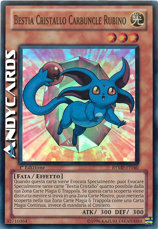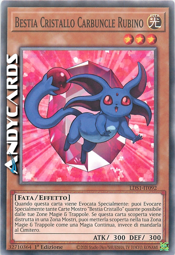 Quando questa carta è Evocata tramite Evocazione Speciale, puoi Evocare tramite Evocazione Speciale quante carte "Bestia Cristallo" possibili dalla tua Zona Carte Magia e Trappola. Se questa carta è distrutta mentre si trova in una Zona Carta Mostro, puoi metterla scoperta nella tua Zona Carte Magia e Trappola come una Carta Magia Continua, invece di mandarla al Cimitero.
