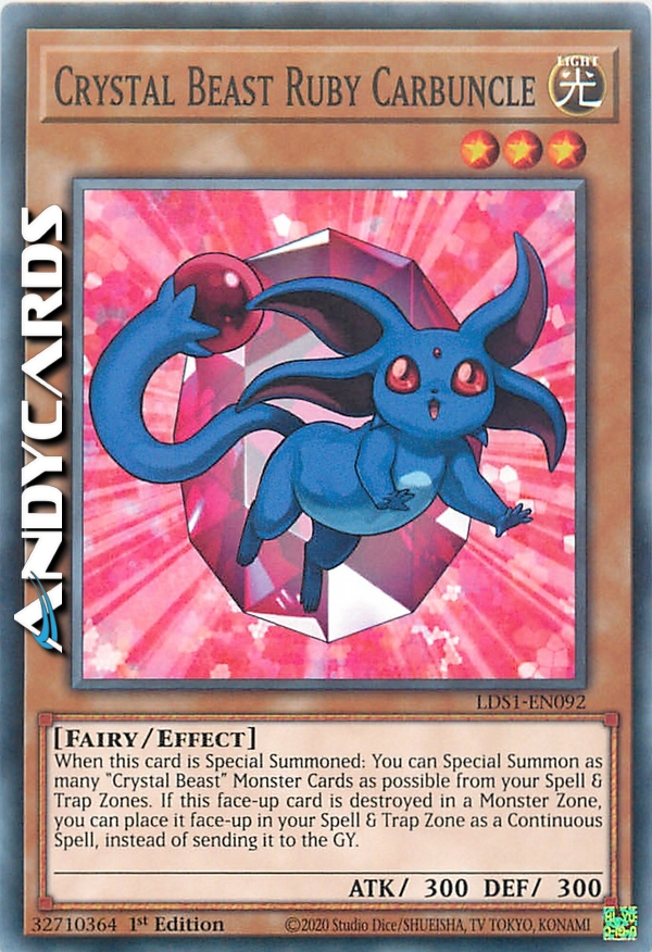 When this card is Special Summoned: You can Special Summon as many "Crystal Beast" Monster Cards as possible from your Spell & Trap Zones. If this face-up card is destroyed in a Monster Zone, you can place it face-up in your Spell & Trap Zone as a Continuous Spell, instead of sending it to the GY.