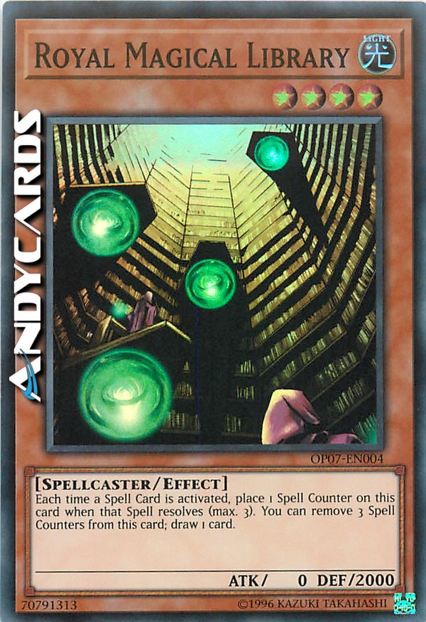 Ogni volta che viene attivata una Carta Magia, metti 1 Segnalino Magia su questa carta quando quella Magia si risolve (massimo 3). Puoi rimuovere 3 Segnalini Magia da questa carta; pesca 1 carta.
