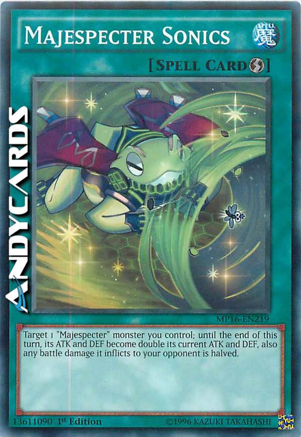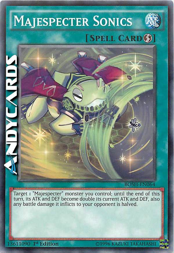 Target 1 "Majespecter" monster you control; until the end of this turn, its ATK andDEF become double its current ATK and DEF, also any battle damage it inflicts to your opponent is halved.