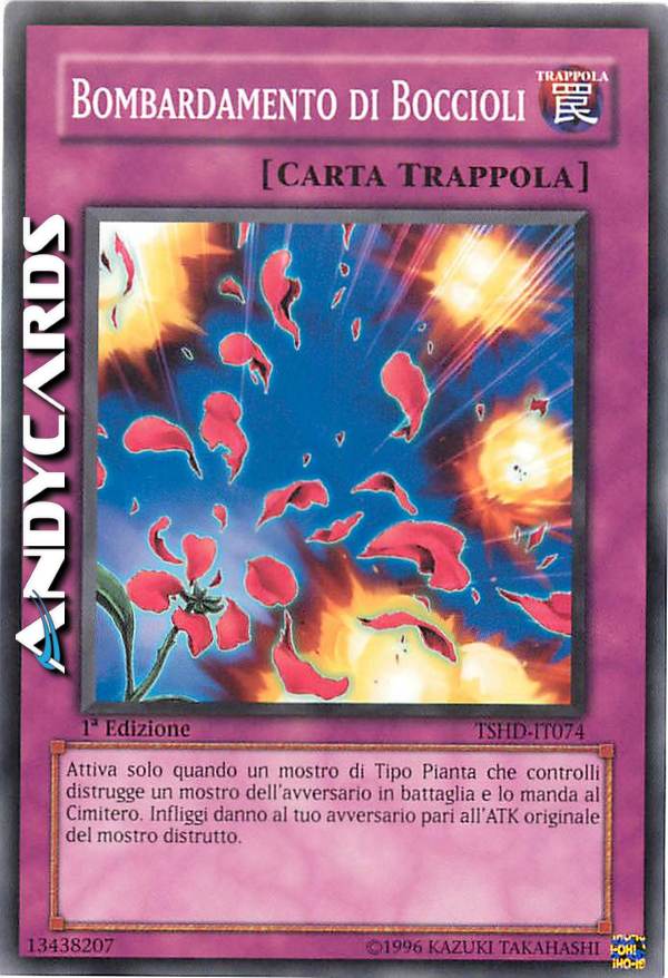 Attiva solo quando un mostro di Tipo Pianta che controlli distrugge un mostro dell'avversario in battaglia e lo manda al Cimitero. Infliggi danno al tuo avversario pari all'ATK originale del mostro distrutto.