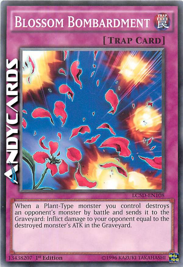 Activate only when a Plant-Type monster you control destroys an opponent's monster by battle and sends it to the Graveyard. Inflict damage to your opponent equal to the destroyed monster's original ATK.