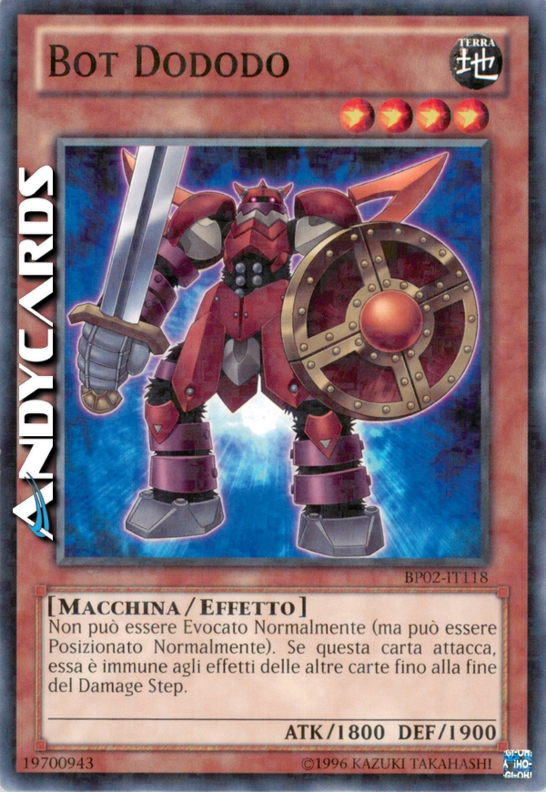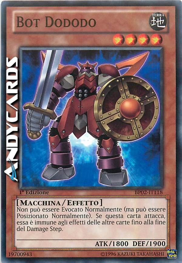 Non può essere Evocato Normalmente (ma può essere Posizionato Normalmente). Se questa carta attacca, essa è immune agli effetti delle altre carte fino alla fine del Damage Step.