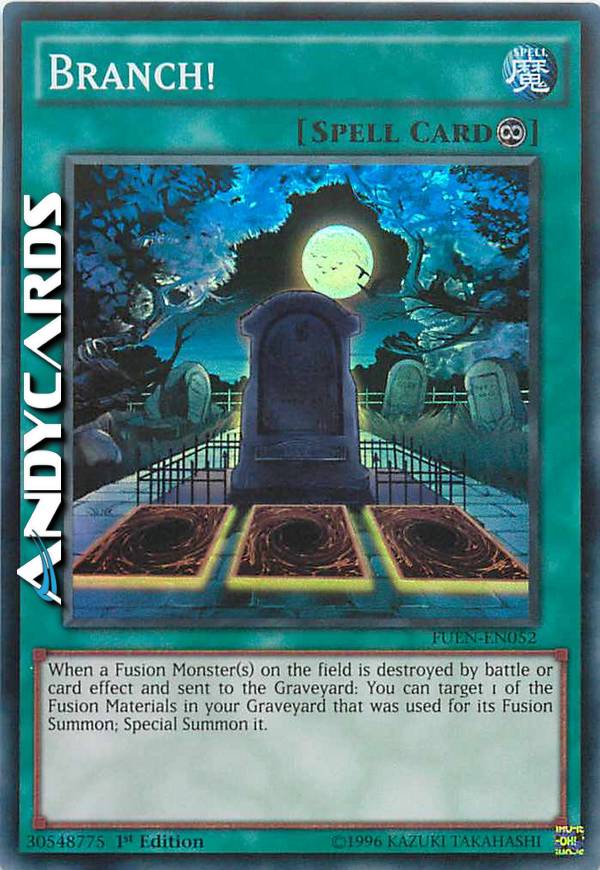 Quando 1 Mostro fusione sul terreno viene distrutto e mandato al cimitero, puoi evocare tramite evocazione speciale dal tuo cimitero 1 dei mostri materiale da fusione usati per l'evocazione per fusione di quel mostro fusione.