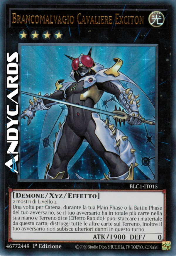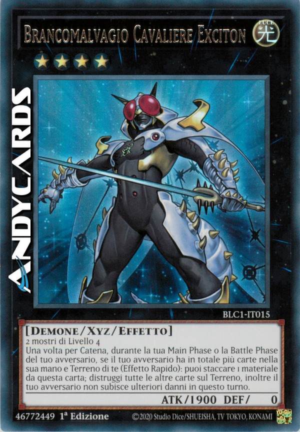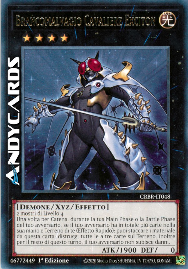 Una volta per Catena, durante la tua Main Phase o la Battle Phase del tuo avversario, se il tuo avversario ha in totale più carte nella sua mano e Terreno di te (Effetto Rapido): puoi staccare 1 materiale da questa carta; distruggi tutte le altre carte sul Terreno, inoltre il tuo avversario non subisce ulteriori danni in questo turno.