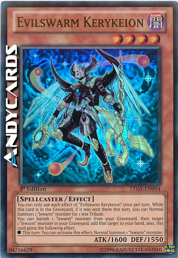 You can only use each effect of "Evilswarm Kerykeion" once per turn. While this card is in the Graveyard, if it was sent there this turn, you can Normal Summon 1 "lswarm" monster for 1 less Tribute. You can banish 1 "lswarm" monster from your Graveyard, then target 1 "lswarm" monster in your Graveyard; add that target to your hand, also, this card gains the following effect. • This turn: You can activate this effect; Normal Summon 1 "lswarm" monster.