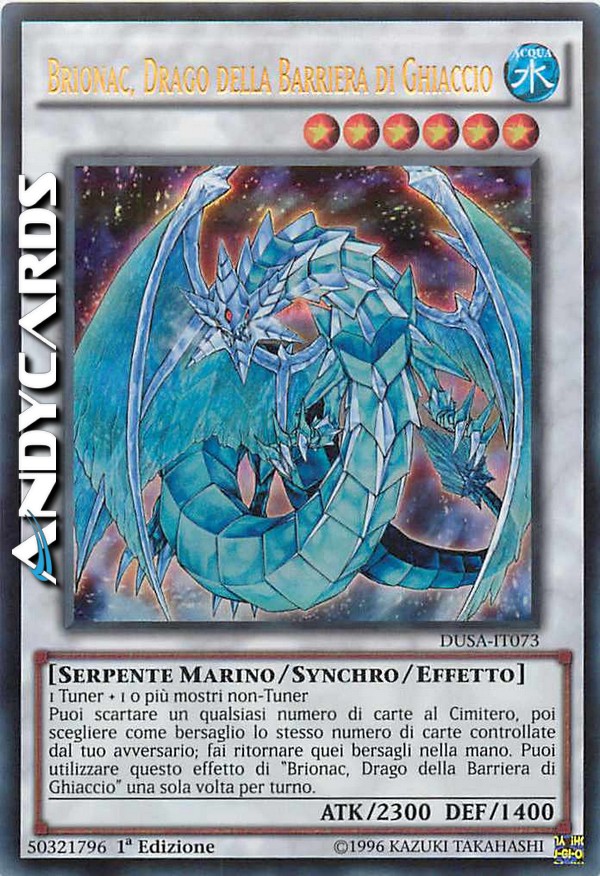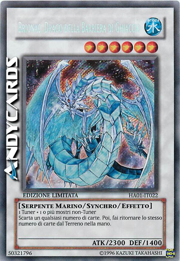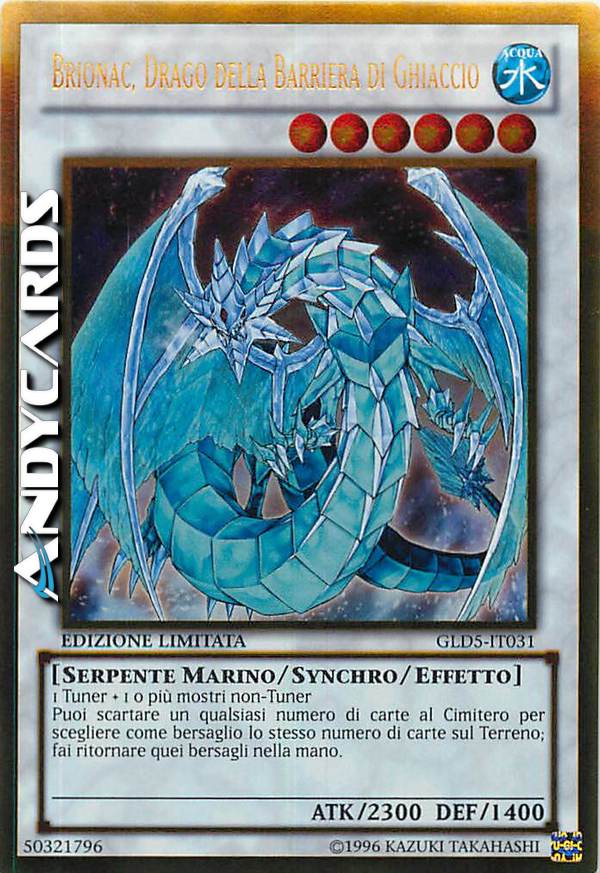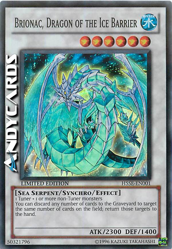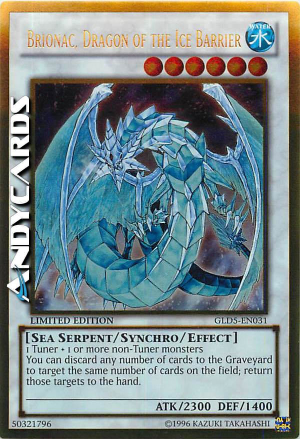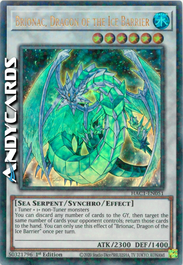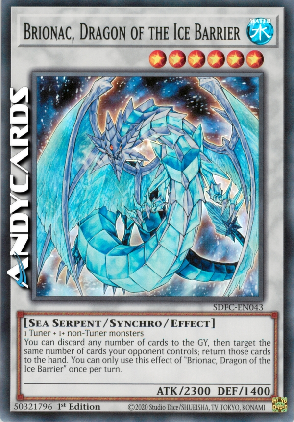 Puoi scartare un qualsiasi numero di carte al Cimitero, poi scegliere come bersaglio lo stesso numero di carte controllate dal tuo avversario; fai ritornare quelle carte nella mano. Puoi utilizzare questo effetto di "Brionac, Drago della Barriera di Ghiaccio" una sola volta per turno.