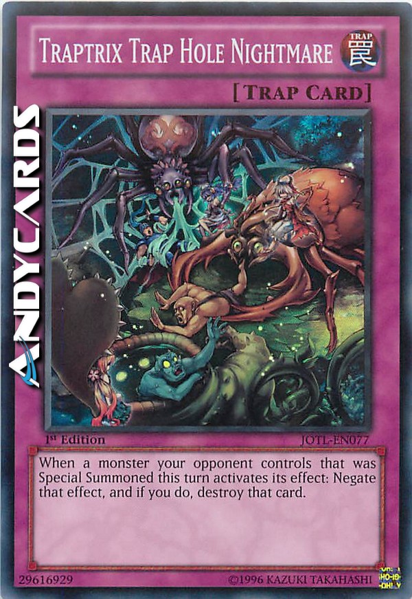 Quando un mostro che è stato Evocato Specialmente in questo turno attiva il suo effetto sul Terreno del tuo avversario: annulla quell'effetto e, se lo fai, distruggi quella carta.