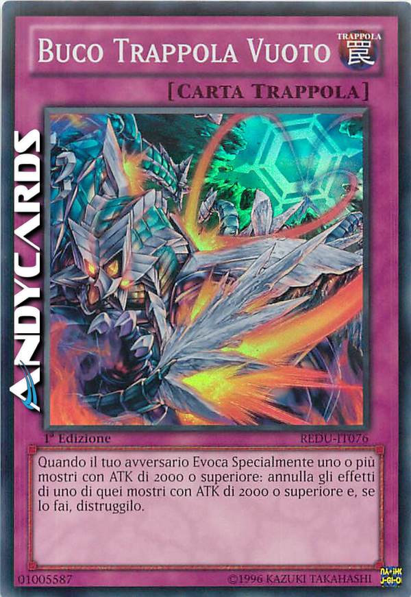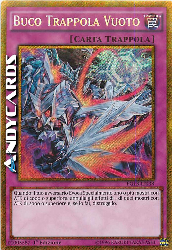 Quando il tuo avversario Evoca Specialmente uno o più mostri con ATK di 2000 o superiore: annulla gli effetti di 1 di quei mostri con ATK di 2000 o superiore e, se lo fai, distruggilo.