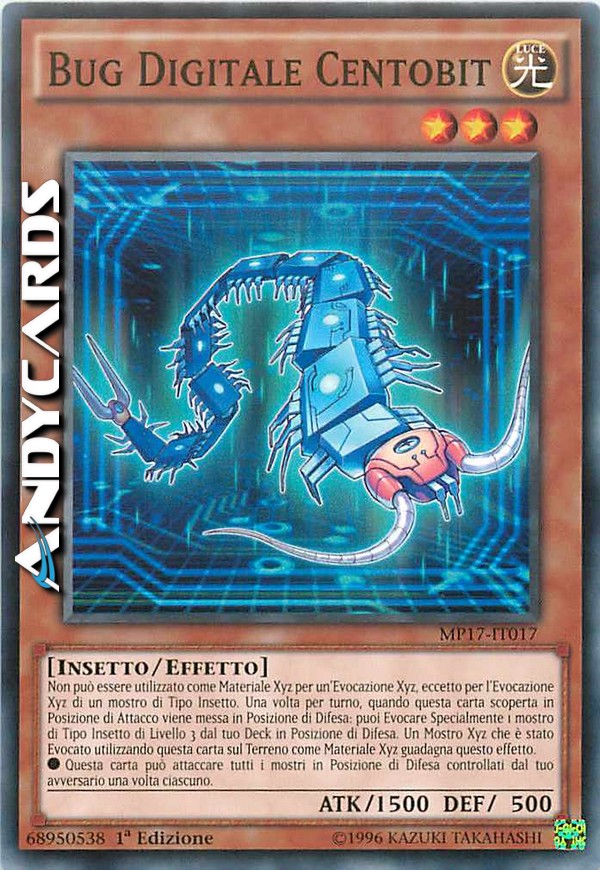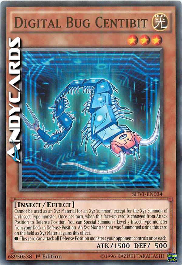 Cannot be used as an Xyz Material for an Xyz Summon, except for the Xyz Summon of an Insect-Type monster. Once per turn, when this face-up card is changed from Attack Position to Defense Position: You can Special Summon 1 Level 3 Insect-Typemonster from your Deck in Defense Position. An Xyz Monster that was Summoned using this card on the field as Xyz Material gains this effect. This card can attack all Defense Position monsters your opponent controls once each.