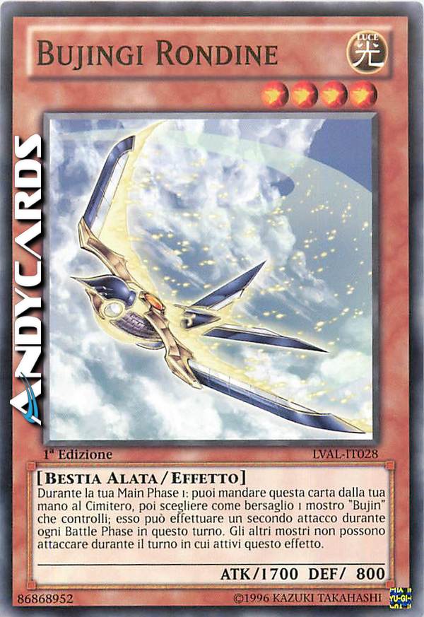 Durante la tua Main Phase 1: puoi mandare questa carta dalla tua mano al Cimitero, poi scegliere come bersaglio 1 mostro "Bujin" che controlli; esso può effettuare un secondo attacco durante ogni Battle Phase in questo turno. Gli altri mostri non possono attaccare durante il turno in cui attivi questo effetto.