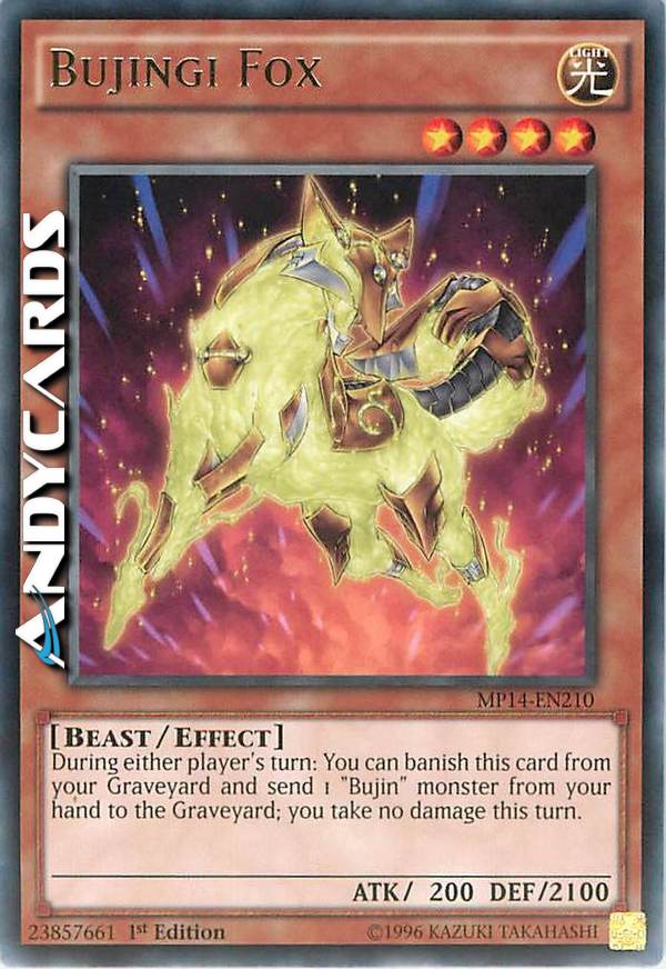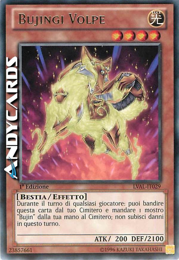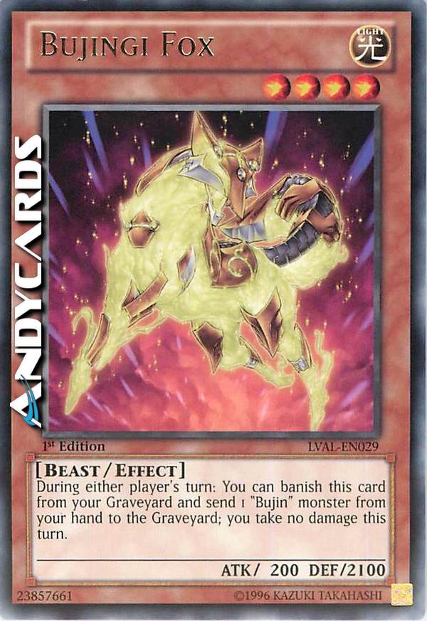 Durante il turno di qualsiasi giocatore: puoi bandire questa carta dal tuo Cimitero e mandare 1 mostro "Bujin" dalla tua mano al Cimitero; non subisci danni in questo turno.