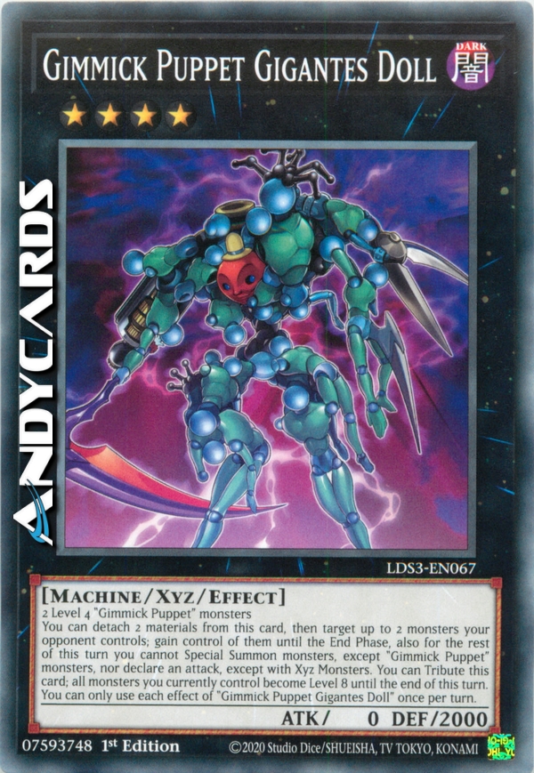 You can detach 2 materials from this card, then target up to 2 monsters your opponent controls; gain control of them until the End Phase, also for the rest of this turn you cannot Special Summon monsters, except "Gimmick Puppet" monsters, nor declare an attack, except with Xyz Monsters. You can Tribute this card; all monsters you currently control become Level 8 until the end of this turn. You can only use each effect of "Gimmick Puppet Gigantes Doll" once per turn.