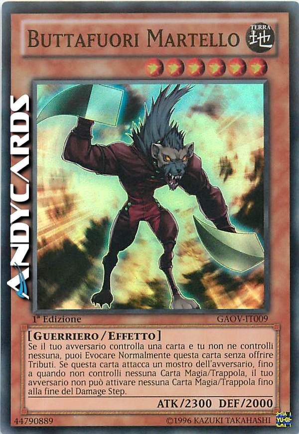 Se il tuo avversario controlla una carta e tu non ne controlli nessuna, puoi Evocare Normalmente questa carta senza offrire Tributi. Se questa carta attacca un mostro dell'avversario, fino a quando non controlli nessuna Carta Magia/Trappola, il tuo avversario non può attivare nessuna Carta Magia/Trappola fino alla fine del Damage Step.