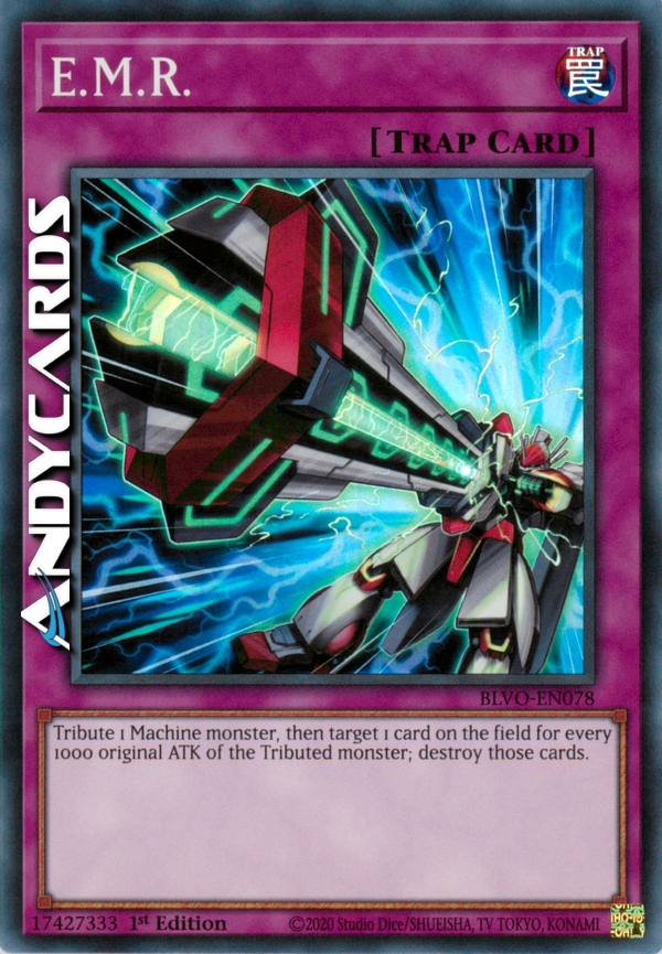 Offri come Tributo 1 mostro Macchina, poi scegli come bersaglio 1 carta sul Terreno per ogni 1000 di ATK originale del mostro offerto come Tributo; distruggi quelle carte.