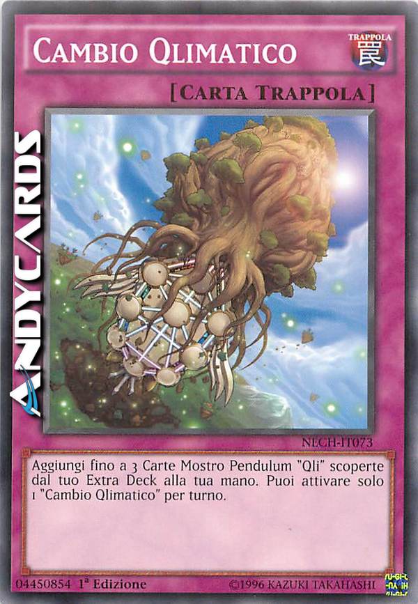 Aggiungi fino a 3 Carte Mostro Pendulum "Qli" scoperte dal tuo Extra Deck alla tua mano. Puoi attivare solo 1 "Cambio Qlimatico" per turno.