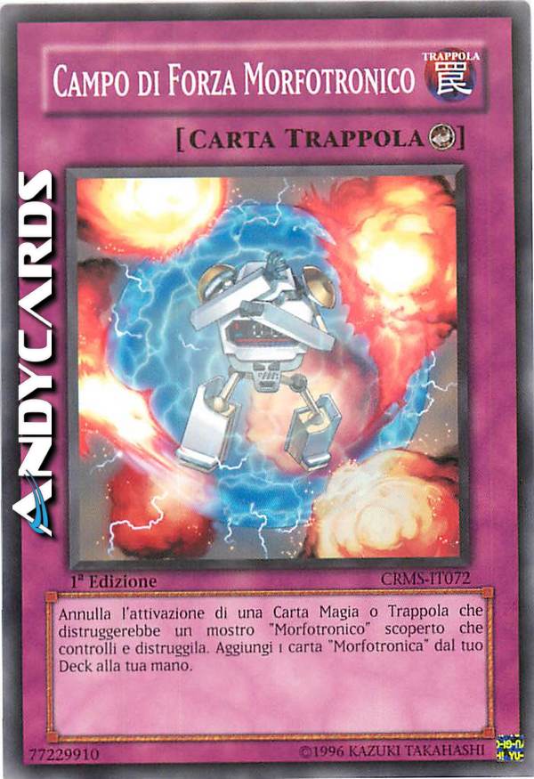 Annulla l'attivazione di una carta magia o trappola che distruggerebbe un mostro "morfotronico"scoperto che controlli e distruggila.Aggiungi una carta "morfotronica"dal tuo deck alla tua mano.