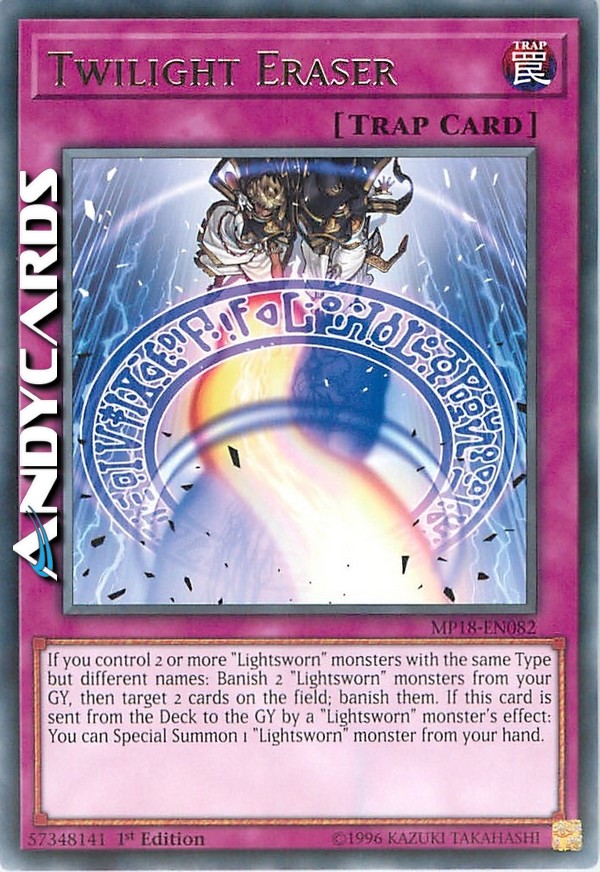 If you control 2 or more "Lightsworn" monsters with the same Type but different names: Banish 2 "Lightsworn" monsters from your GY, then target 2 cards on the field; banish them. If this card is sent from the Deck to the GY by a "Lightsworn" monster's effect: You can Special Summon 1 "Lightsworn" monster from your hand.
