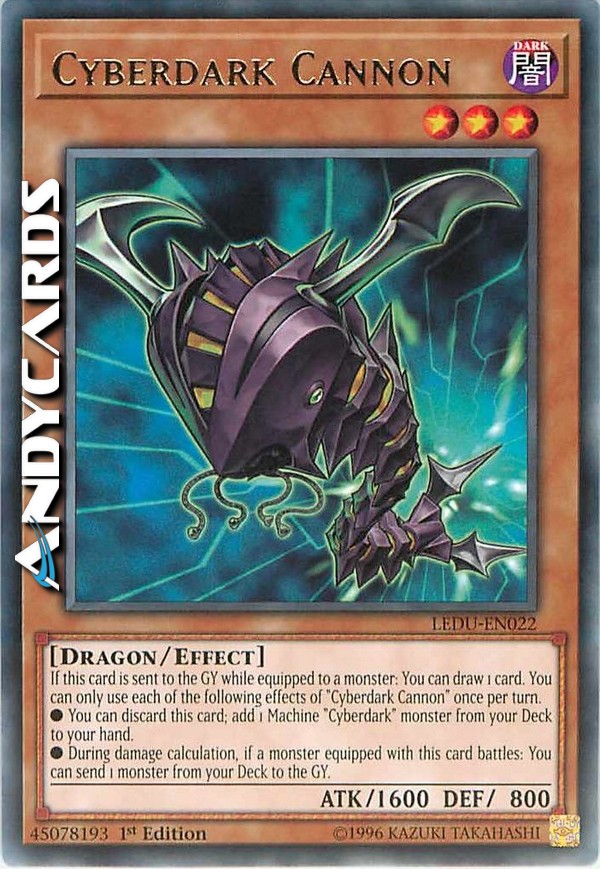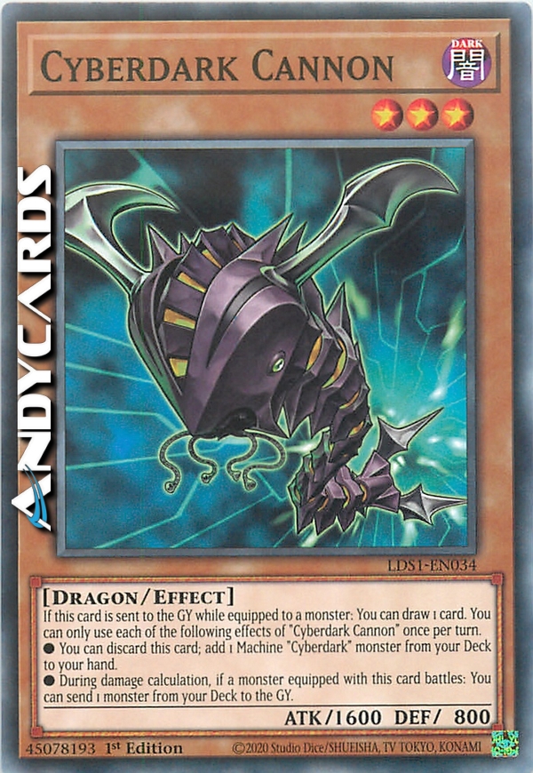 If this card is sent to the GY while equipped to a monster: You can draw 1 card. You can only use each of the following effects of "Cyberdark Cannon" once per turn.