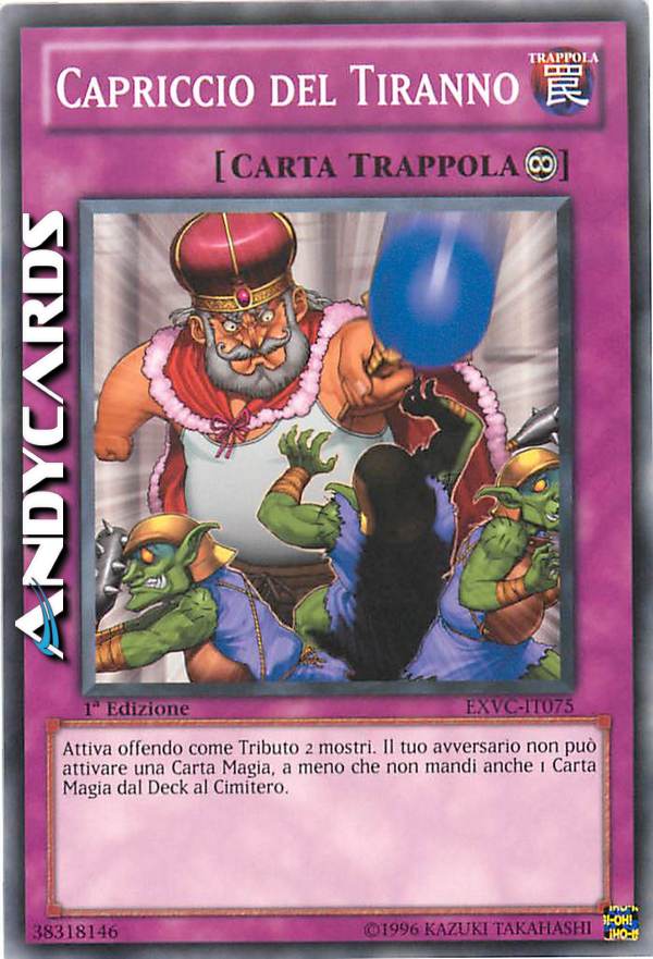 Attiva offendo come Tributo 2 mostri. Il tuo avversario non può attivare una Carta Magia, a meno che non mandi anche 1 Carta Magia dal Deck al Cimitero.