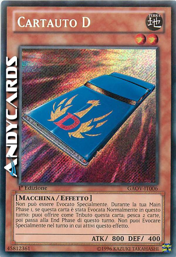 Non può essere Evocata Specialmente. Durante la tua Main Phase 1, se questa carta è stata Evocata Normalmente in questo turno: puoi offrire come Tributo questa carta; pesca 2 carte, poi passa alla End Phase. Non puoi Evocare Specialmente durante il turno in cui attivi questo effetto.