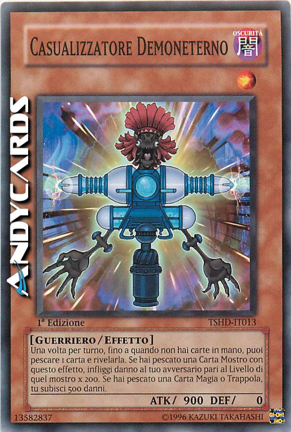 Una volta per turno, fino a quando non hai carte in mano, puoi pescare 1 carta e rivelarla. Se hai pescato una Carta Mostro con questo effetto, infliggi danno al tuo avversario pari al Livello di quel mostro x 200. Se hai pescato una Carta Magia o Trappola, tu subisci 500 danni.