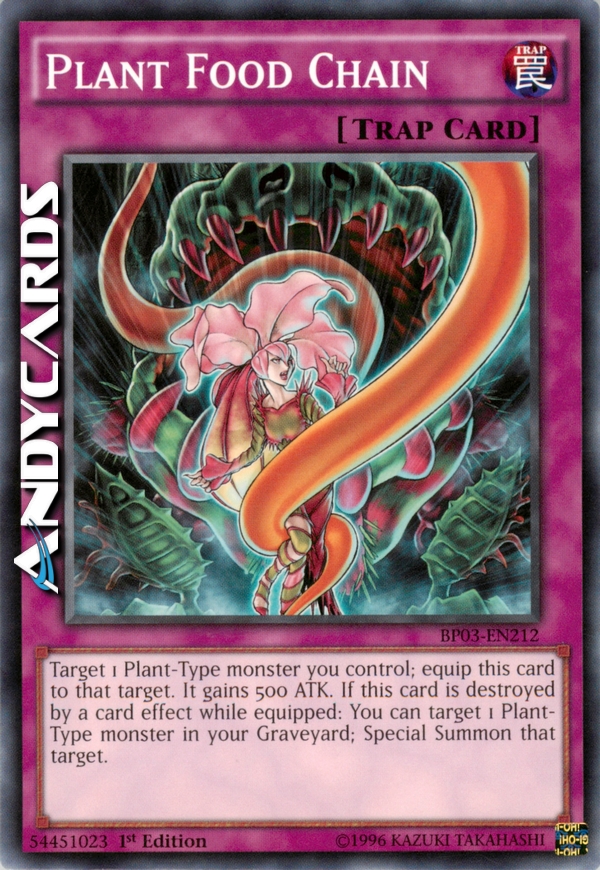 Equip this card to a Plant-Type monster you control. It gains 500 ATK. If this card is destroyed by a card effect while equipped, you can Special Summon 1 Plant-Type monster from your Graveyard.