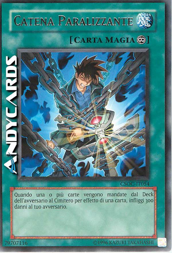 Quando una o più carte vengono mandate dal Deck dell'avversario al Cimitero per effetto di una carta, infliggi 300 danni al tuo avversario.