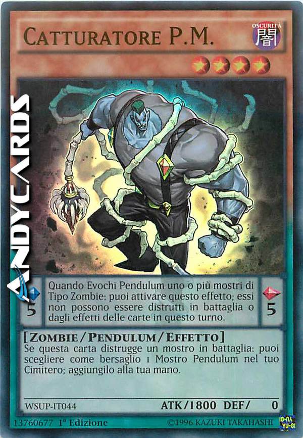 5 Quando Evochi Pendulum uno o più mostri di Tipo Zombie: puoi attivare questo effetto; essi non possono essere distrutti in battaglia o dagli effetti delle carte in questo turno. - Se questa carta distrugge un mostro in battaglia: puoi scegliere come bersaglio 1 Mostro Pendulum nel tuo Cimitero; aggiungilo alla tua mano.