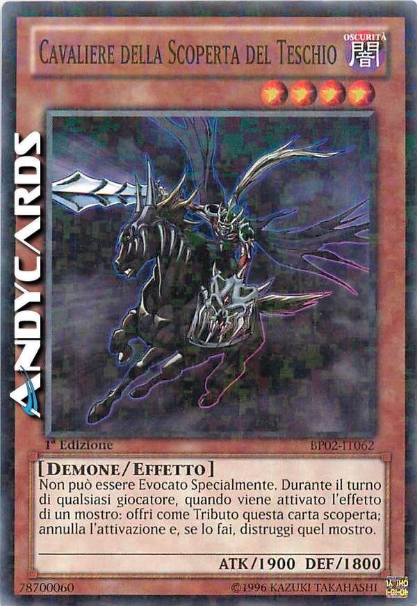 Non può essere Evocato Specialmente. Durante il turno di qualsiasi giocatore, se viene attivato l'effetto di un mostro: offri come Tributo questa carta scoperta; annulla l'attivazione e, se lo fai, distruggi quel mostro.