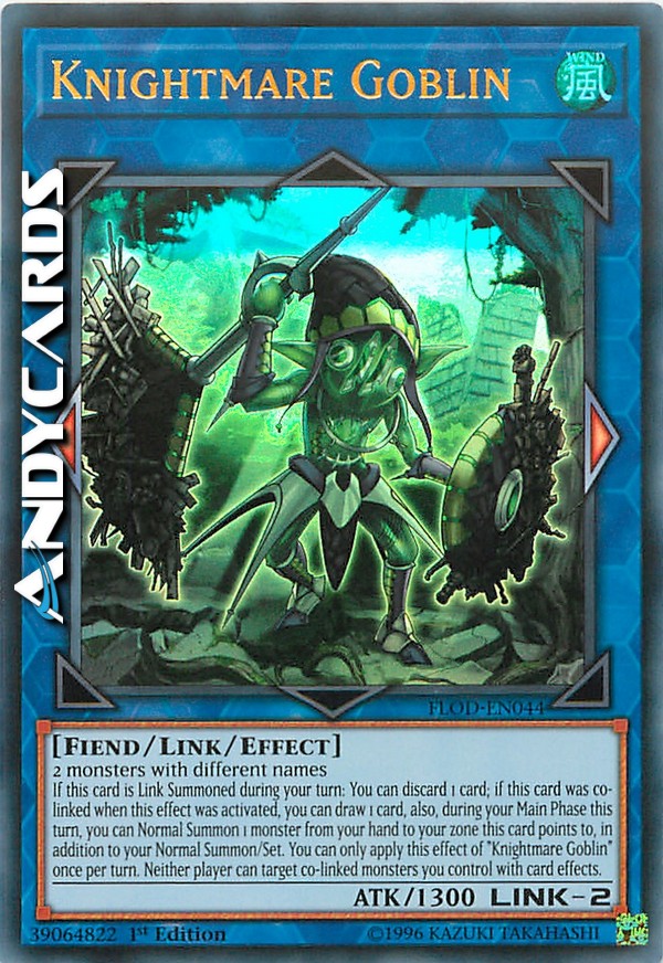 If this card is Link Summoned during your turn: You can discard 1 card; if this card was co-linked when this effect was activated, you can draw 1 card, also, during your Main Phase this turn, you can Normal Summon 1 monster from your hand to your zone this card points to, in addition to your Normal Summon/Set. You can only apply this effect of "Knightmare Goblin" once per turn. Neither player can target co-linked monsters you control with card effects.