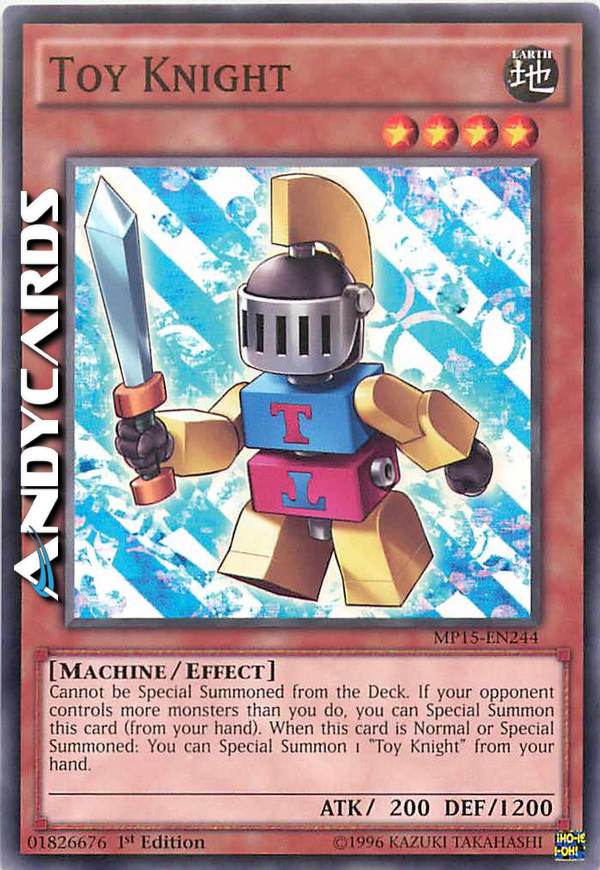 Cannot be Special Summoned from the Deck. If your opponent controls more monsters than you do, you can Special Summon this card (from your hand). When this card is Normal or Special Summoned: You can Special Summon 1 "Toy Knight" from your hand.