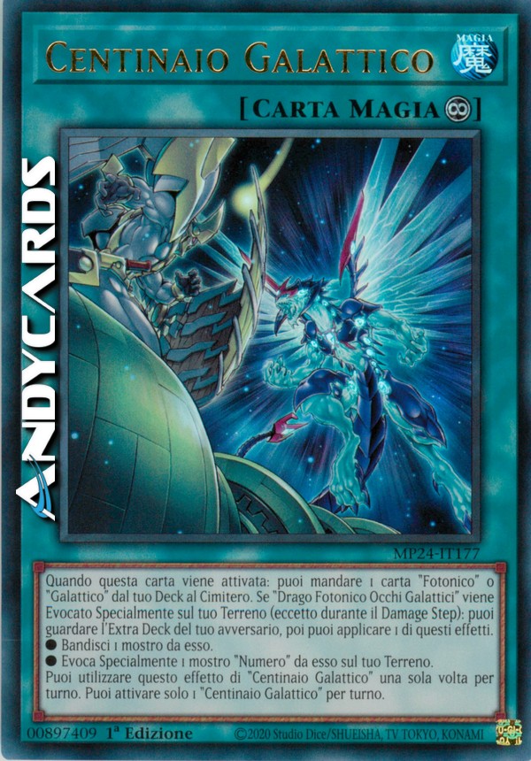 Puoi utilizzare questo effetto di "Centinaio Galattico" una sola volta per turno. Puoi attivare solo 1 "Centinaio Galattico" per turno.