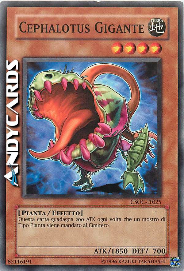 Questa carta guadagna 200 ATK ogni volta che un mostro di Tipo Pianta viene mandato al Cimitero.