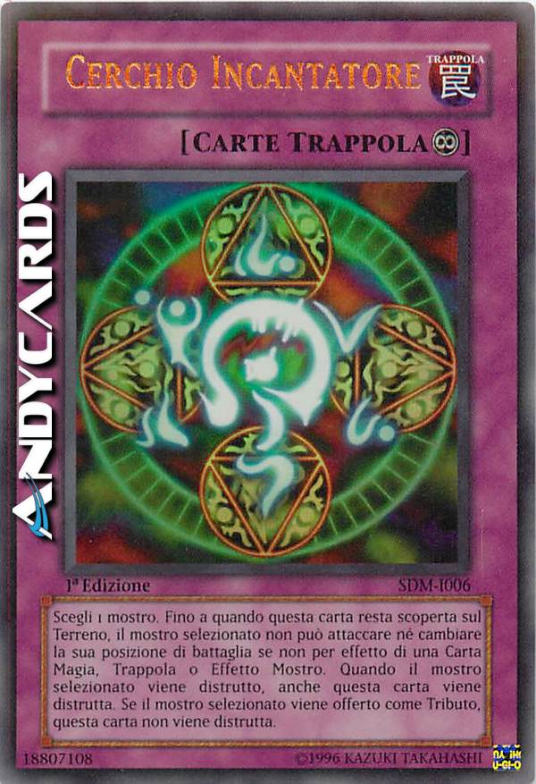 Attiva questa carta scegliendo come bersaglio 1 mostro controllato dal tuo avversario; esso non può attaccare o cambiare posizione. Quando quel mostro viene distrutto, distruggi questa carta.