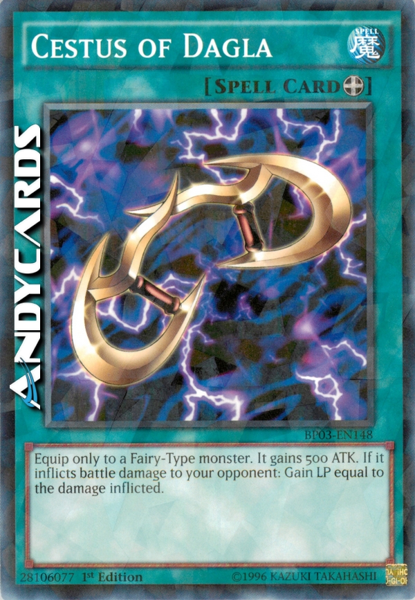 Equipaggia solo a un mostro Fata. Esso guadagna 500 ATK. Se esso infligge danno da combattimento al tuo avversario: guadagni LP pari al danno inflitto.