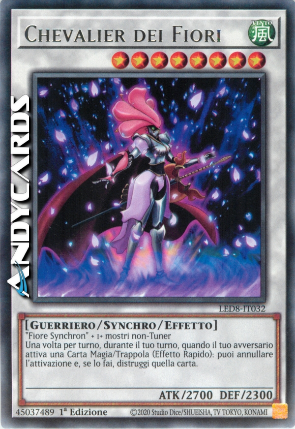 Fiore Synchron + 1 o più mostri non-Tuner - Una volta durante ogni tuo turno, quando il tuo avversario attiva una Carta Magia/Trappola, puoi annullare l'attivazione e distruggere quella carta.