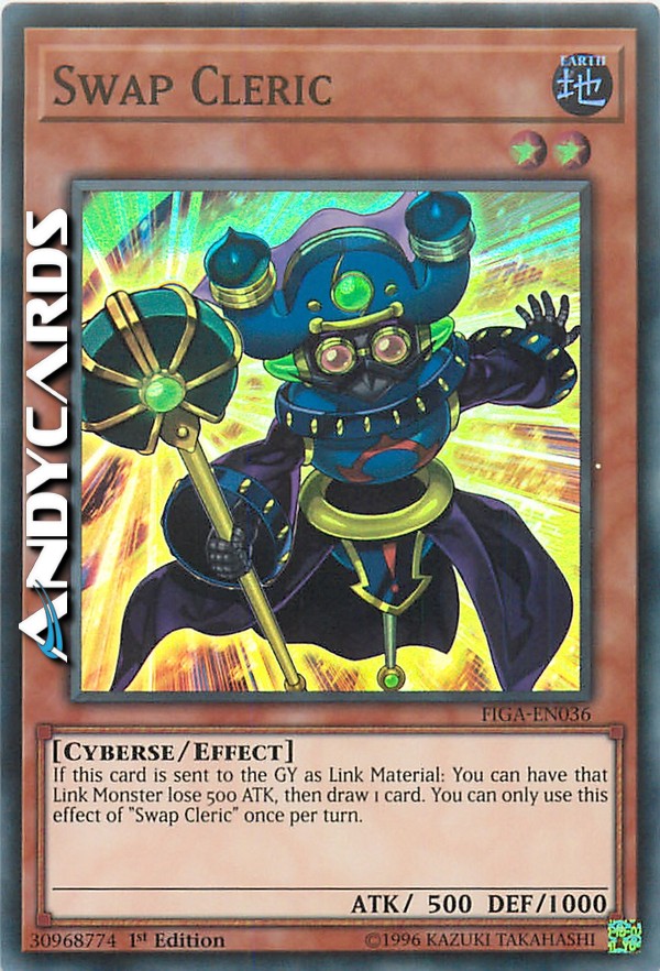 If this card is sent to the GY as Link Material: You can have that Link Monster lose 500 ATK, then draw 1 card. You can only use this effect of "Swap Cleric" once per turn.