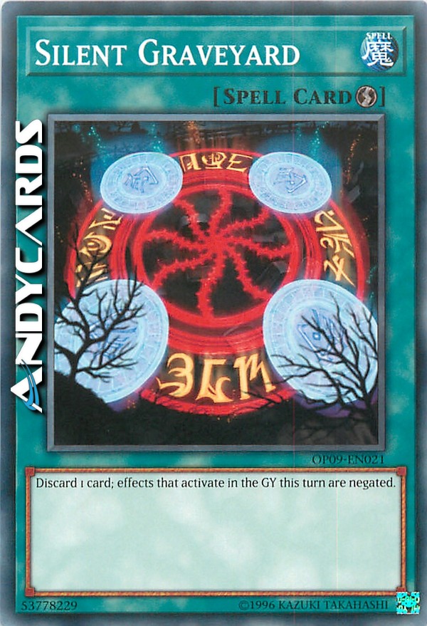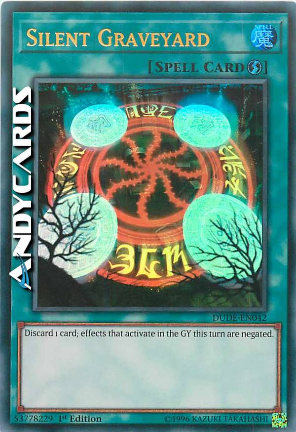 Scarta 1 carta; gli effetti che si attivano nel Cimitero in questo turno vengono annullati.