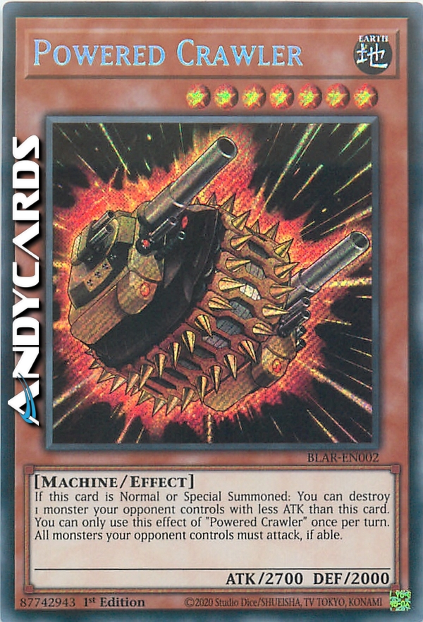 If this card is Normal or Special Summoned: You can destroy 1 monster your opponent controls with less ATK than this card. You can only use this effect of "Powered Crawler" once per turn. All monsters your opponent controls must attack, if able.