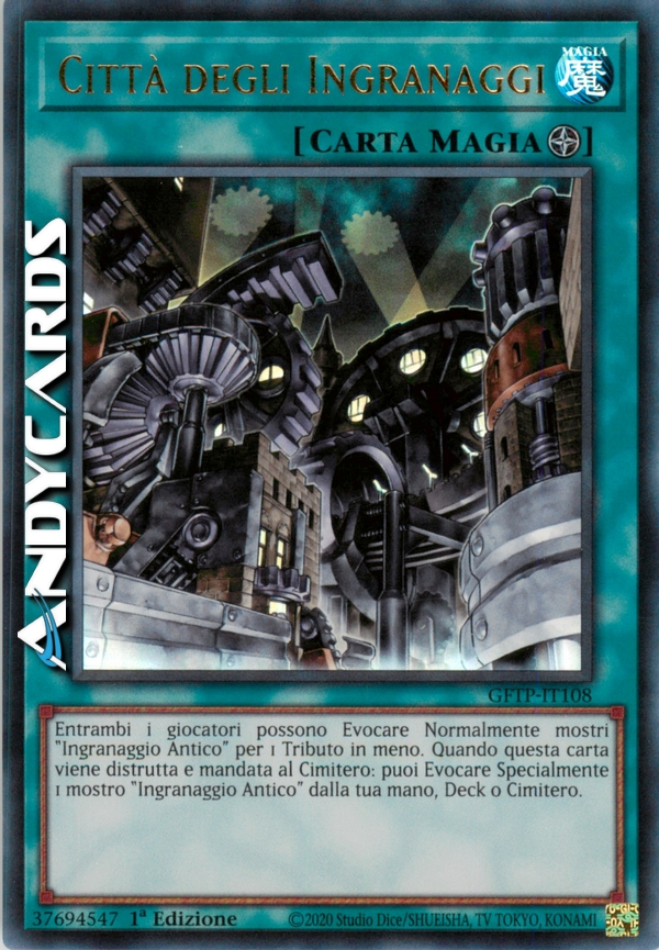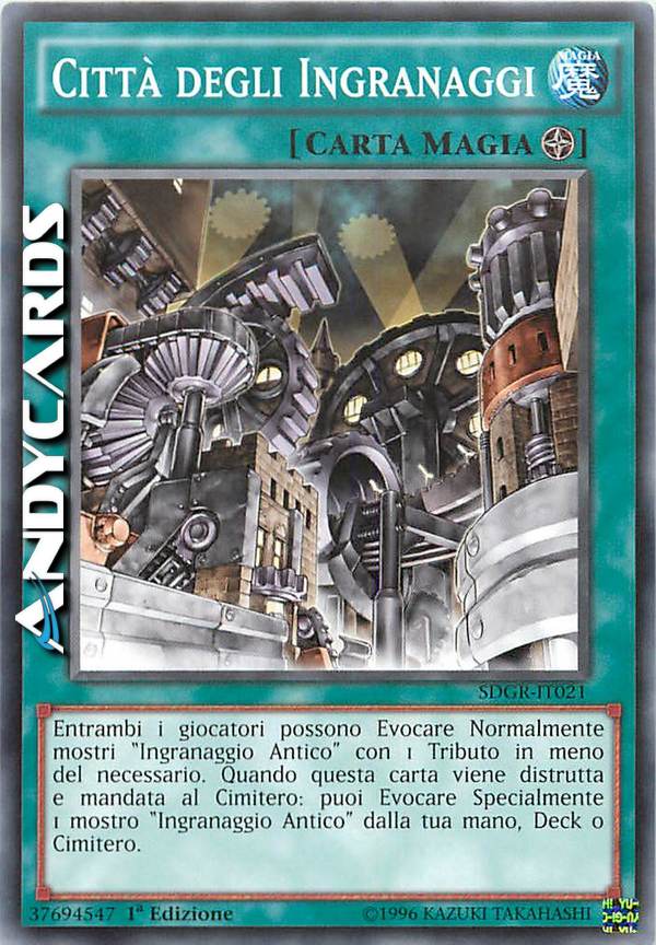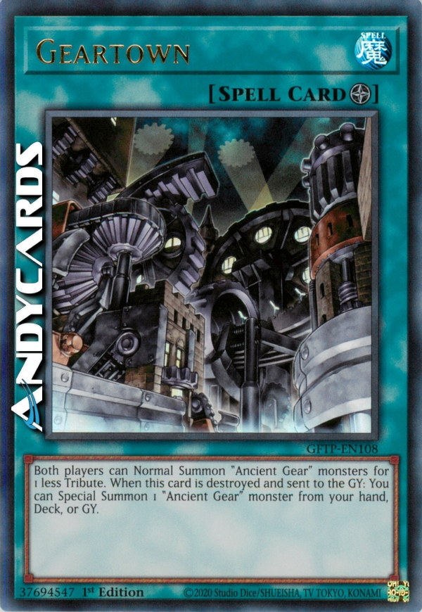 Entrambi i giocatori possono Evocare Normalmente mostri "Ingranaggio Antico" con 1 Tributo in meno del necessario. Quando questa carta viene distrutta e mandata al Cimitero: puoi Evocare Specialmente 1 mostro "Ingranaggio Antico" dalla tua mano, Deck o Cimitero.
