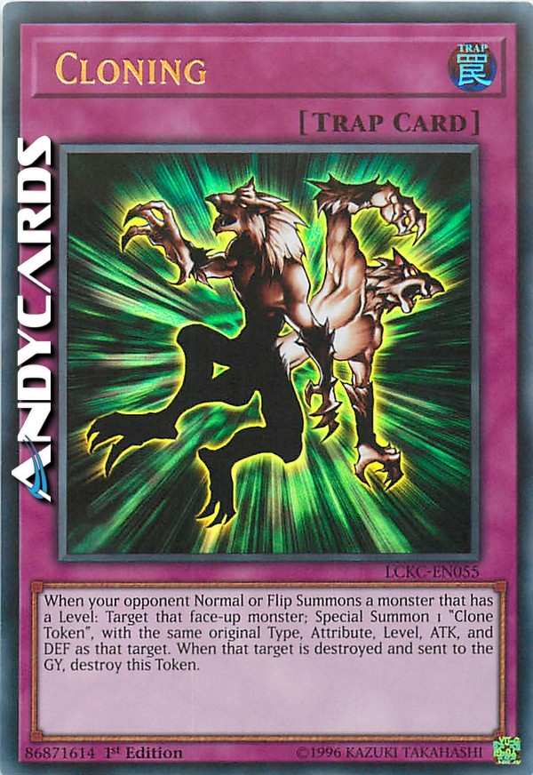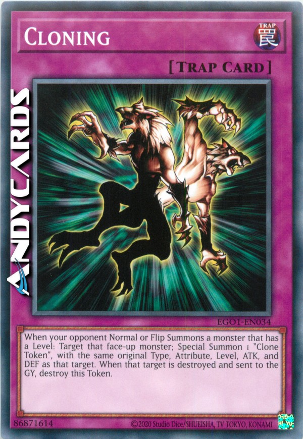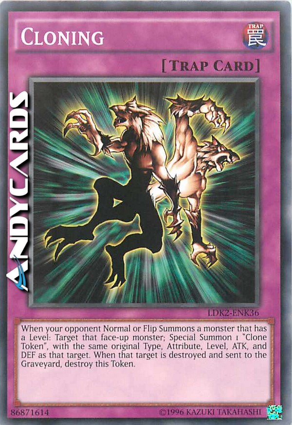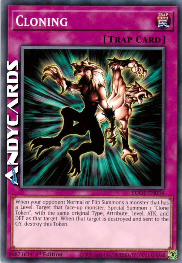 Activate only when your opponent Normal Summons or Flip Summons a monster. Special Summon 1 "Clone Token", with the same original Level, Type, Attribute, ATK and DEF as the Summoned monster. When that monster is destroyed and sent to the Graveyard, destroy this Token.