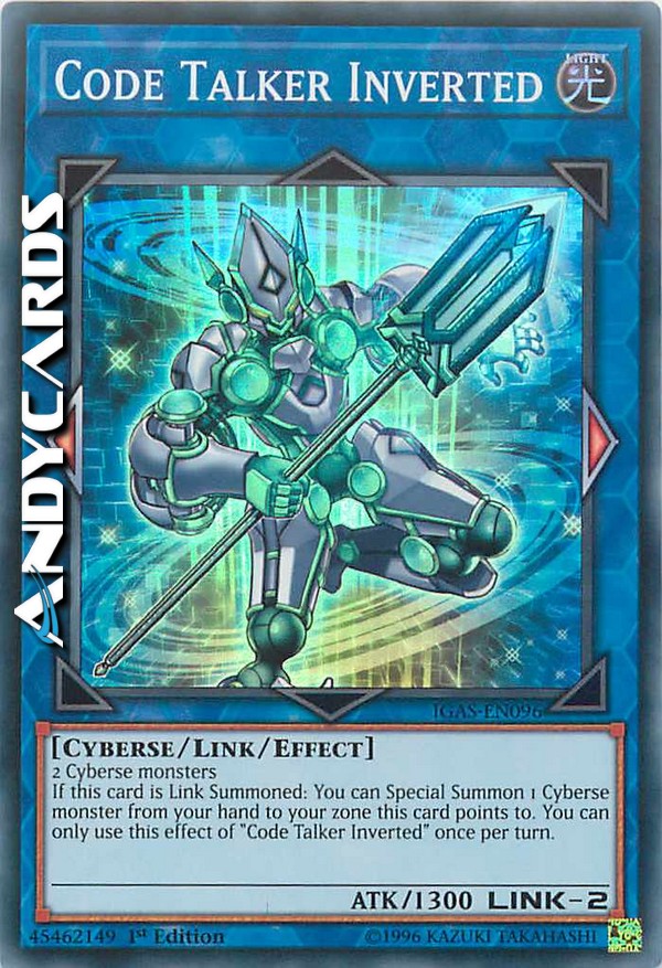 If this card is Link Summoned: You can Special Summon 1 Cyberse monster from your hand to your zone this card points to. You can only use this effect of "Code Talker Inverted" once per turn.