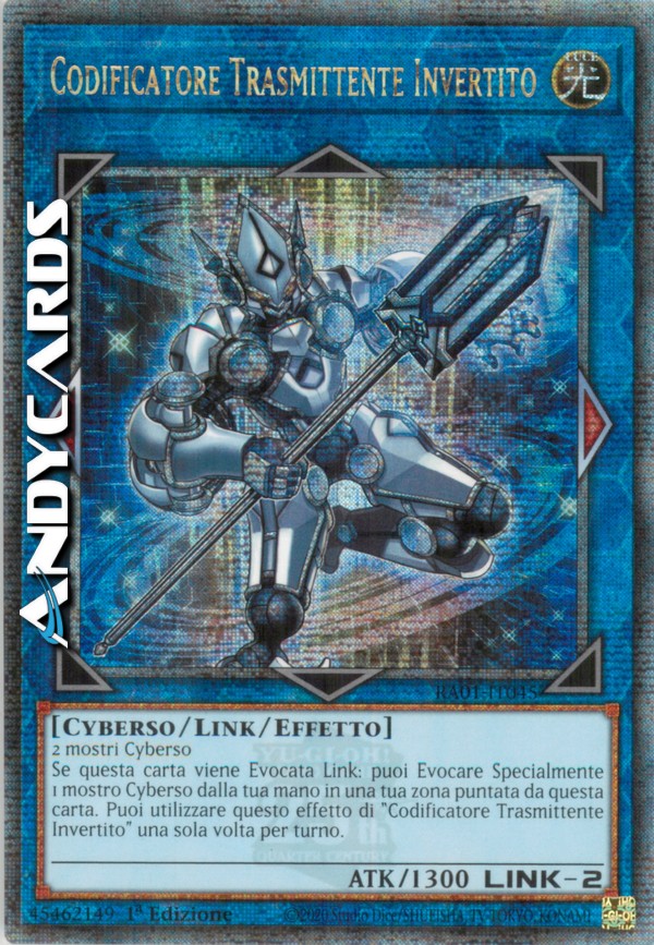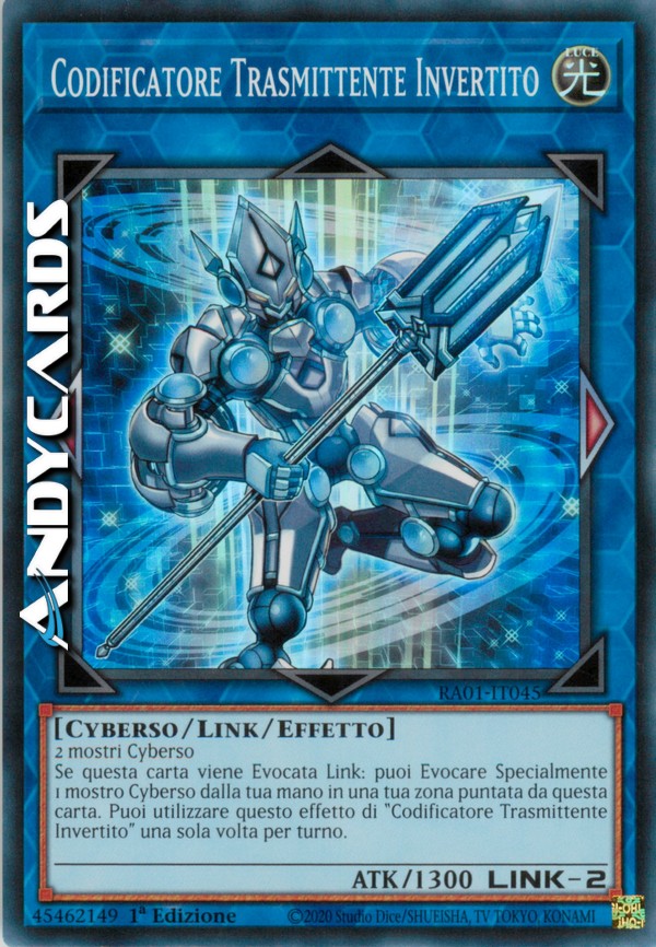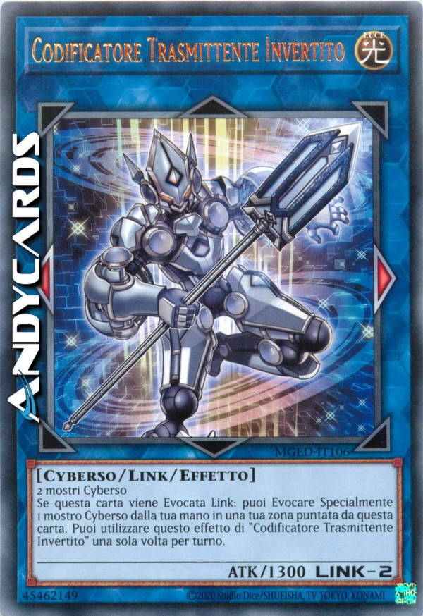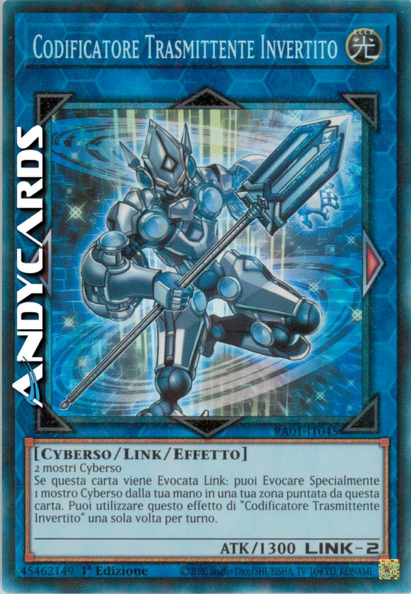 Se questa carta viene Evocata Link: puoi Evocare Specialmente 1 mostro Cyberso dalla tua mano in una tua zona puntata da questa carta. Puoi utilizzare questo effetto di "Codificatore Trasmittente Invertito" una sola volta per turno.