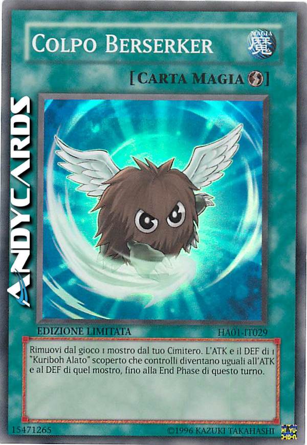 Rimuovi dal gioco 1 mostro dal tuo Cimitero. L'ATK e il DEF di 1 "Kuriboh Alato" scoperto che controlli diventano uguali all'ATK e al DEF di quel mostro, fino alla End Phase di questo turno.