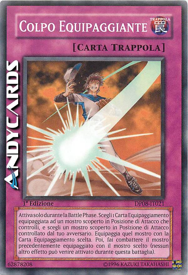 Activate only during the Battle Phase. Select 1 Equip Card equipped to a face-up Attack Position monster you control, and select 1 face-up Attack Position monster your opponent controls. Equip that monster with the selected Equip Card. Then, conduct battle between your previously equipped monster and the selected monster (Other effects cannot be activated during this battle).