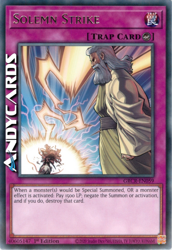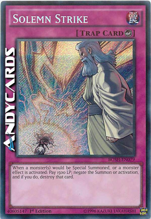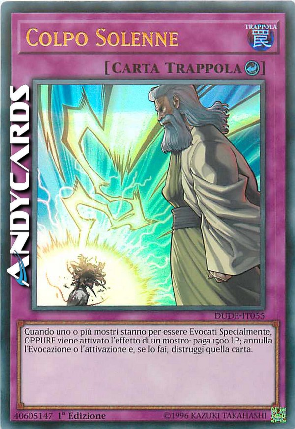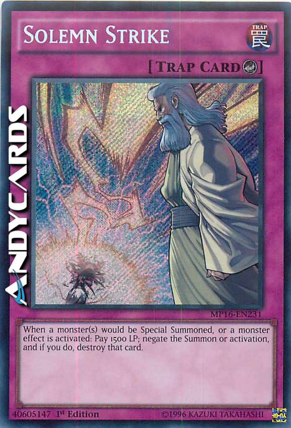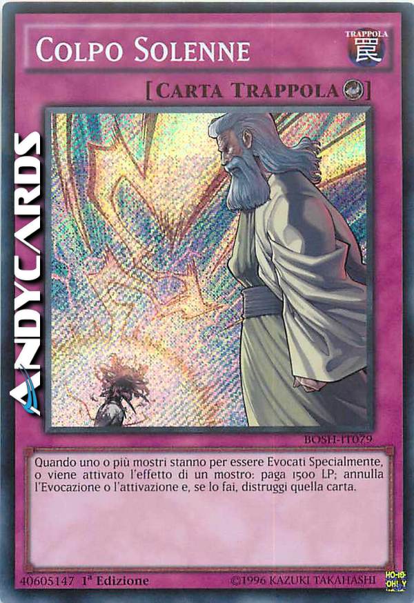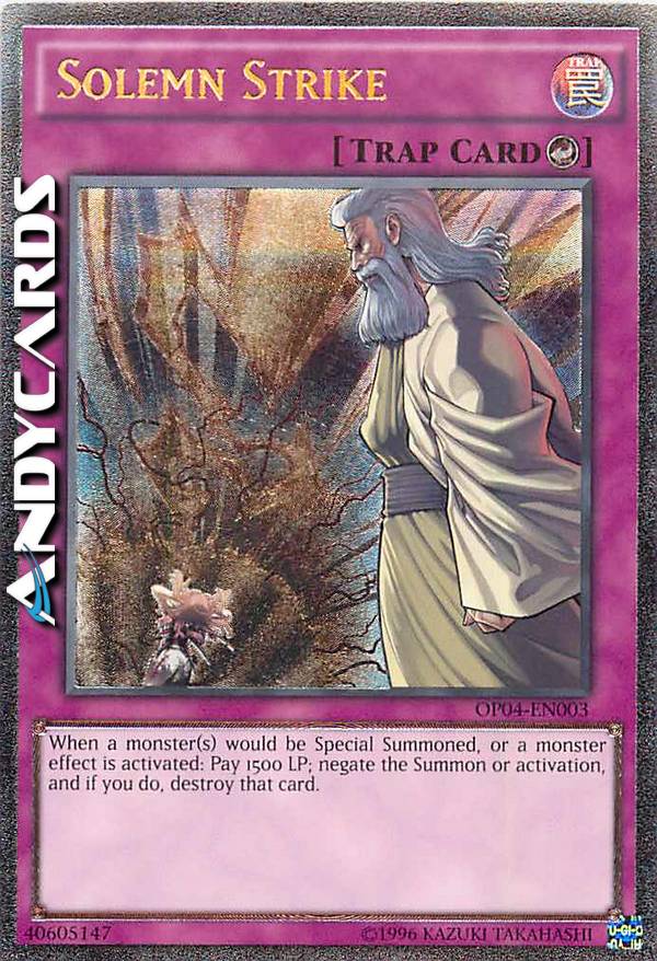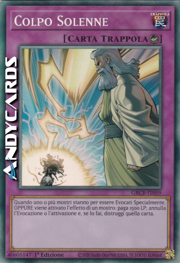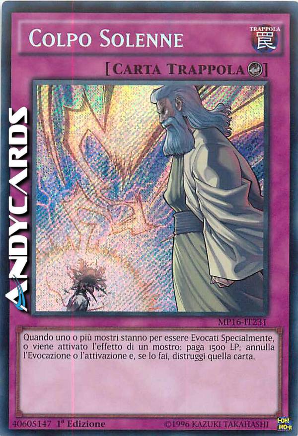 Quando uno o più mostri stanno per essere Evocati Specialmente, o viene attivato l'effetto di un mostro: paga 1500 LP; annulla l'Evocazione o l'attivazione e, se lo fai, distruggi quella carta.