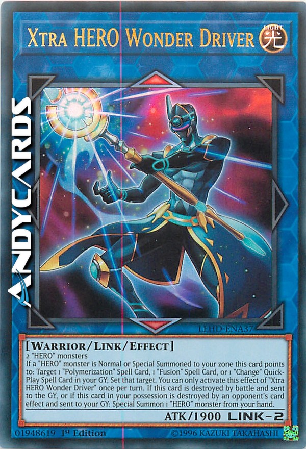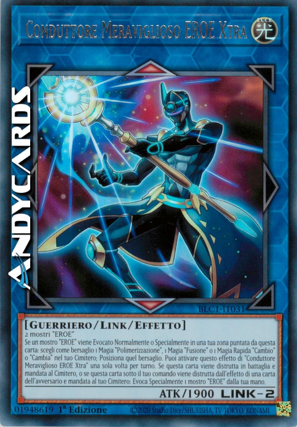 Se un mostro "EROE" viene Evocato Normalmente o Specialmente in una tua zona puntata da questa carta: scegli come bersaglio 1 Magia "Polimerizzazione", 1 Magia "Fusione" o 1 Magia Rapida "Cambio" o "Cambia" nel tuo Cimitero; Posiziona quel bersaglio. Puoi attivare questo effetto di "Conduttore Meraviglioso EROE Xtra" una sola volta per turno. Se questa carta viene distrutta in battaglia e mandata al Cimitero, o se questa carta sotto il tuo comando viene distrutta dall'effetto di una carta dell'avversario e mandata al tuo Cimitero: Evoca Specialmente 1 mostro "EROE" dalla tua mano.